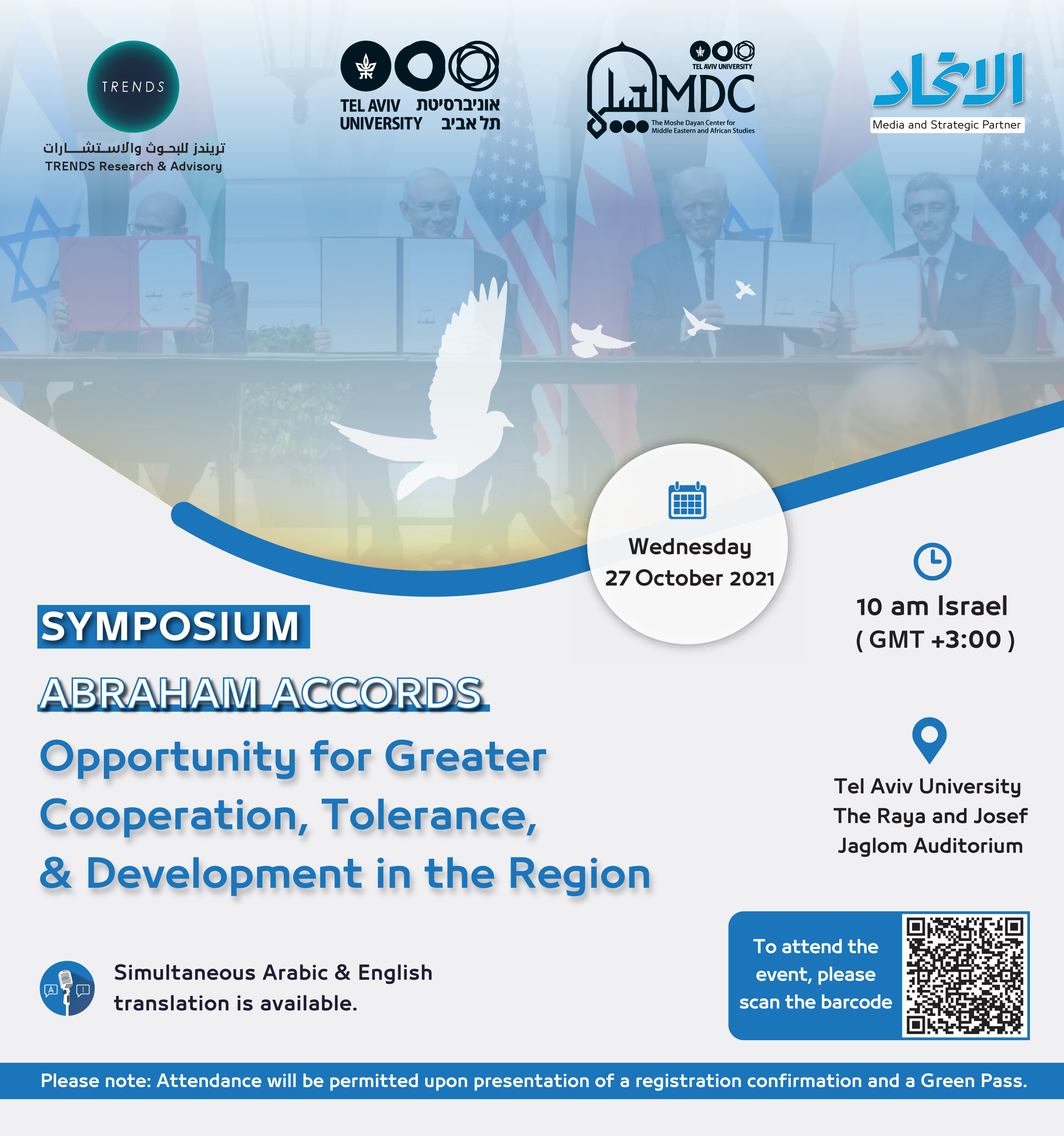 Date October 27, 2021 Abraham Accords MDC Videos and Media The Program for Regional Cooperation See here the video of our joint symposium with TRENDS Research and Advisory (Abu Dhabi) - "Abraham Accords: Opportunity for Greater Cooperation, Tolerance & Development in the Region". For the agenda of the event - press here.