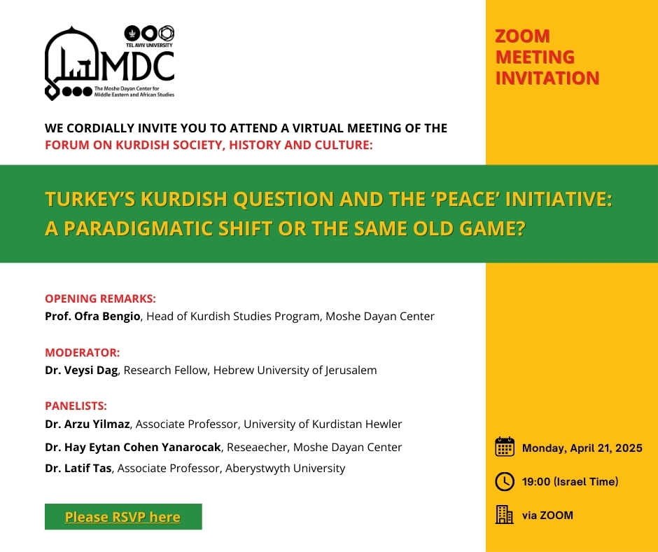The Moshe Dayan Center cordially invites you to attend a virtual meeting of the Forum on Kurdish Society, History and Culture: