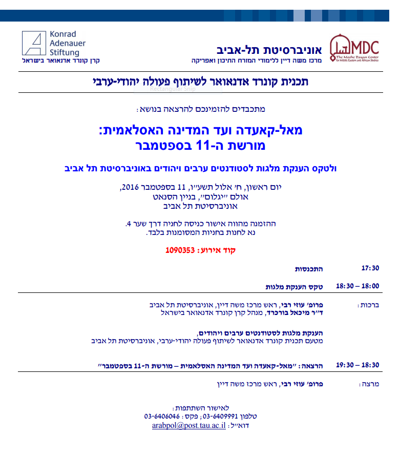 Webcast: From al-Qaeda to the Islamic State: The Legacy of 9/11 (Hebrew)
