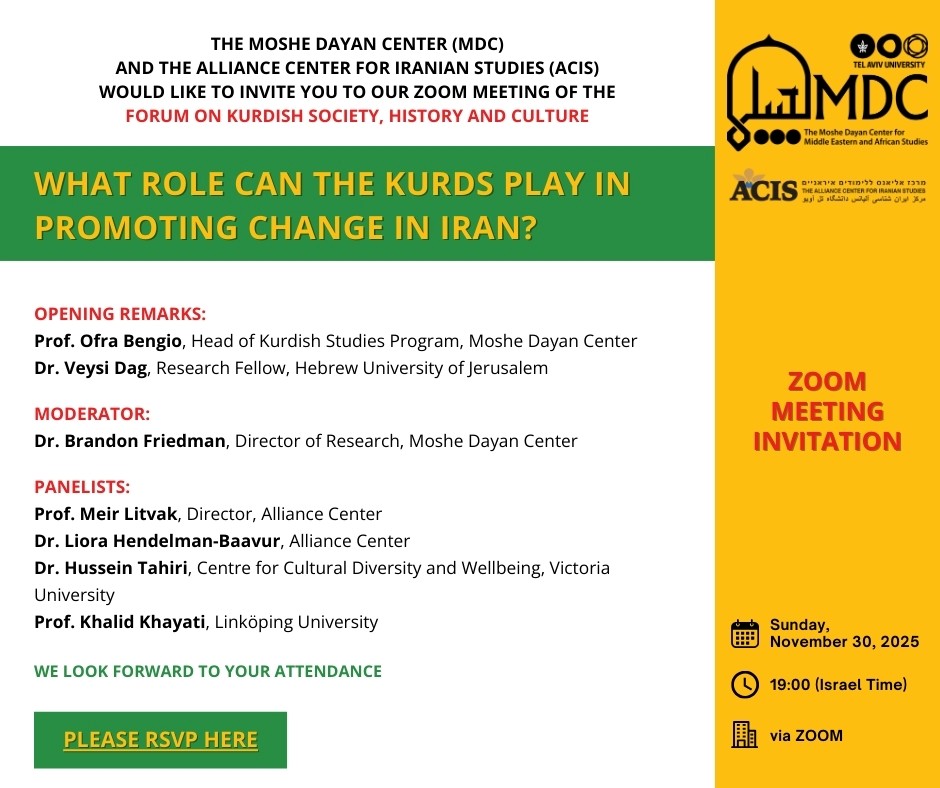 The Moshe Dayan Center and The Alliance Center for Iranian Studies would like to invite you