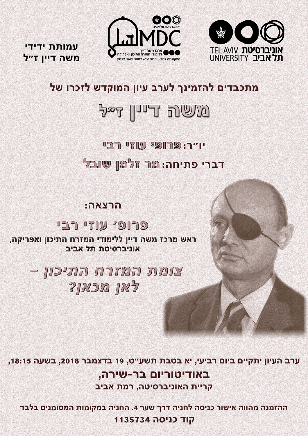 תאריך 24 בדצמבר 2018 קטעי וידאו ומדיה דברי פתיחה - מר זלמן שובל. הרצאה - פרופ' עוזי רבי, "צומת המזרח התיכון - לאן מכאן?" (מדקה 10:16).